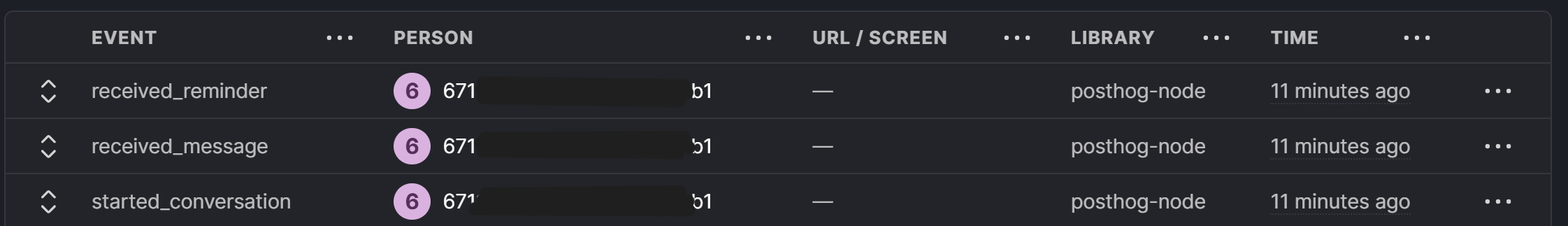 We analyze how you interact Aury (like when you use it, how often, etc.) in pseudonymized form. Pseudonymized means: No direct personal info like your phone number, but something that could indirectly link back to you. Below you see what we see when we analyze this kind of data.